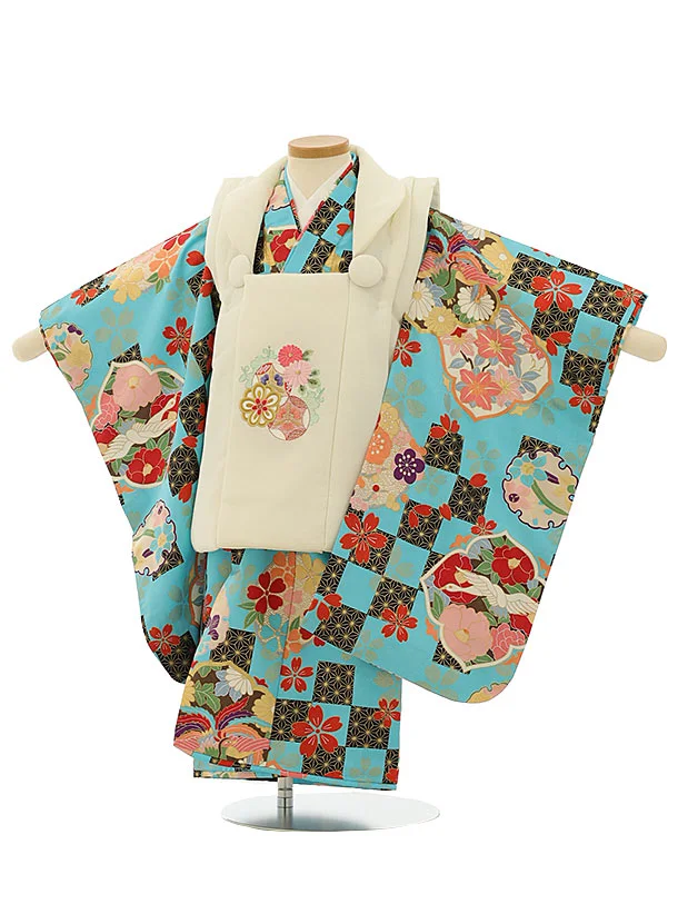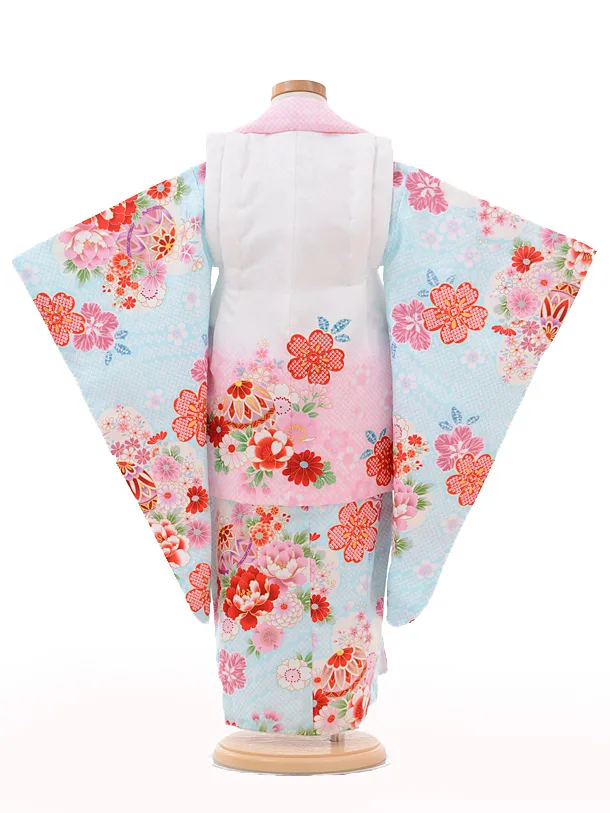 七五三レンタル(3歳女の子被布)3218白ピンクぼかし×水