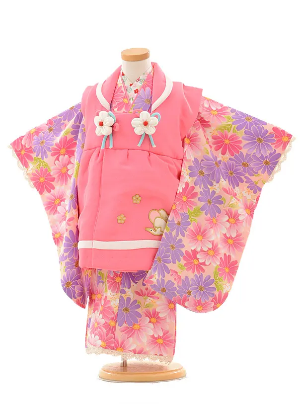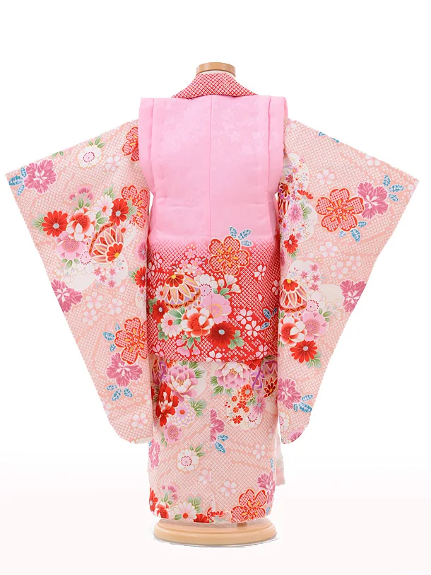 七五三レンタル(3歳女の子被布)3221ピンク赤ぼかし×サ