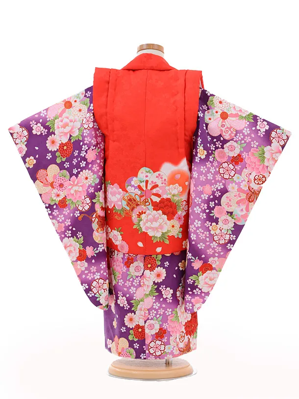 七五三レンタル(3歳女の子被布)3226赤×パープル鼓花