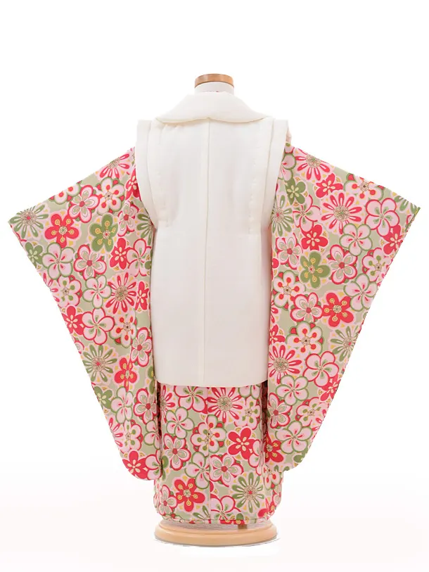 七五三レンタル(3歳女の子被布)3239白梅麻の葉×ひわね