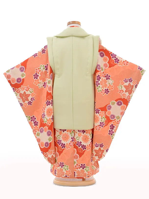 七五三レンタル(3歳女の子被布)3240ひわ梅麻の葉×オレ