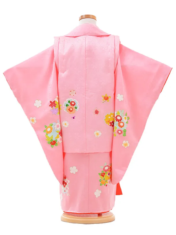 七五三レンタル(3歳女の子被布)3257正絹ピンク地花輪