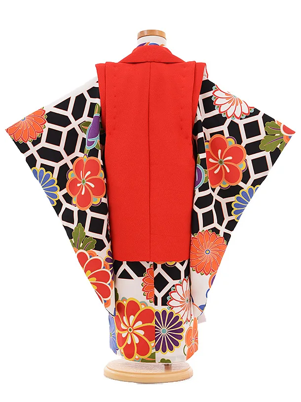 七五三レンタル(3歳女の子被布)3279赤×白黒ねじり梅菊
