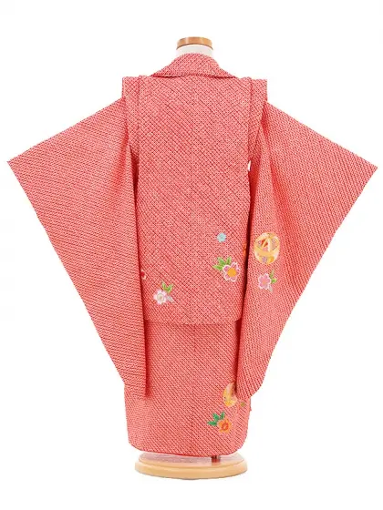 七五三レンタル(3歳女の子被布)3284赤絞り刺繍まり