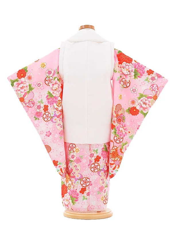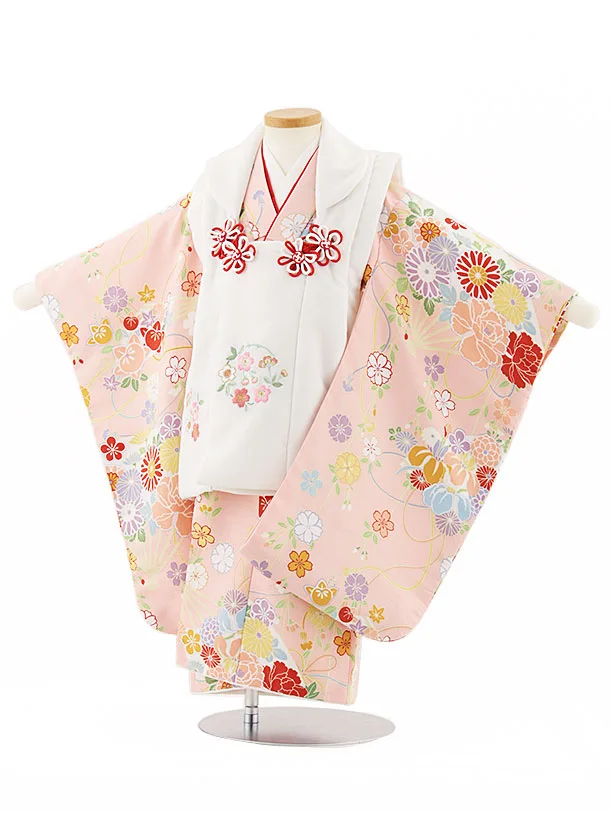 七五三レンタル(3歳女の子被布)3307白鈴×ピンク鼓に花
