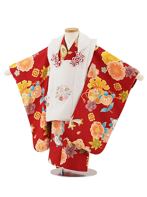 七五三レンタル(3歳女の子被布)3310白まり×赤桜