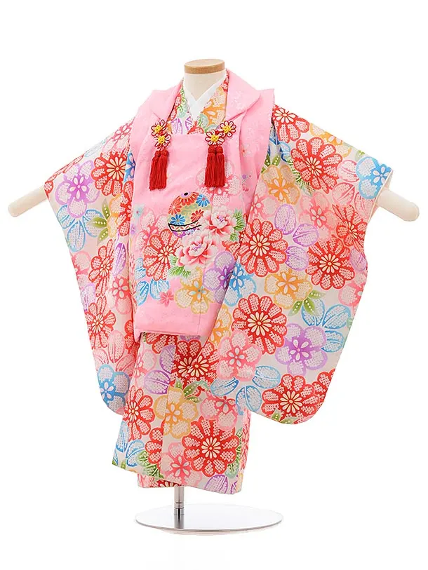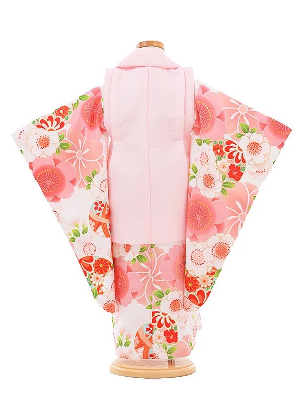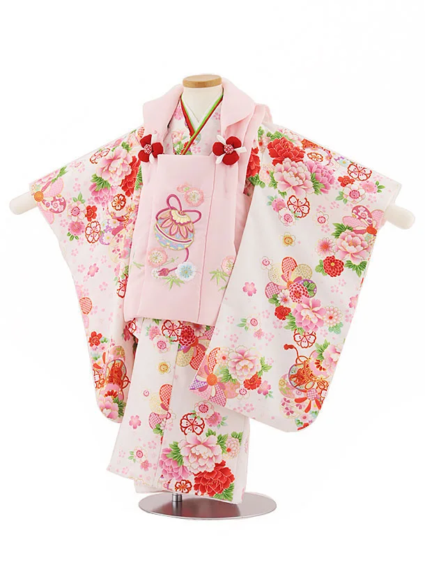 七五三レンタル(3歳女の子被布)3311ピンクまり×白桜