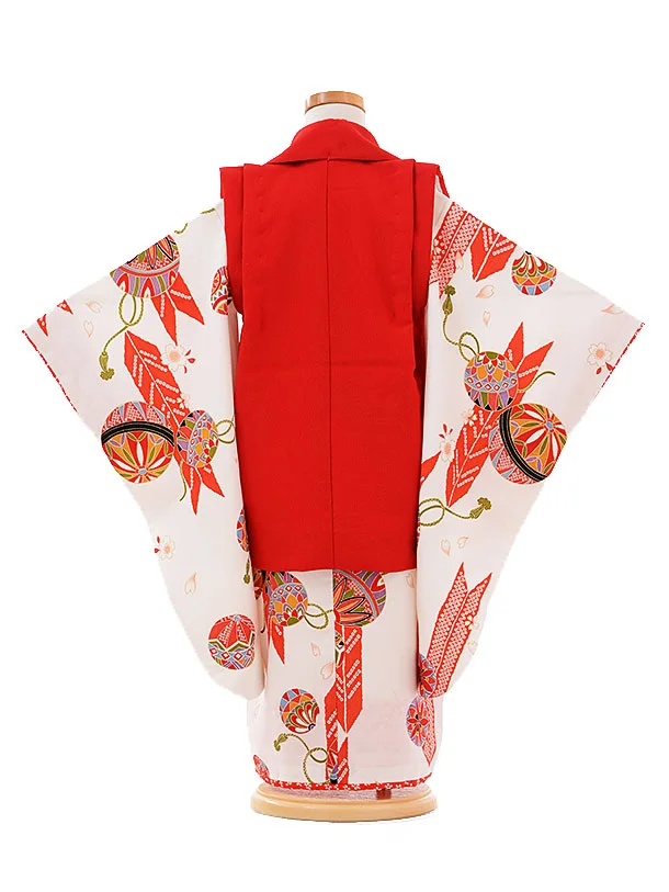 七五三レンタル(3歳女の子被布)3314赤×白矢がすりまり