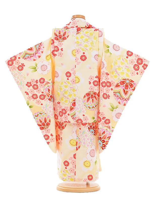 七五三レンタル(3歳女の子被布)3342 クリーム色 まり 小花