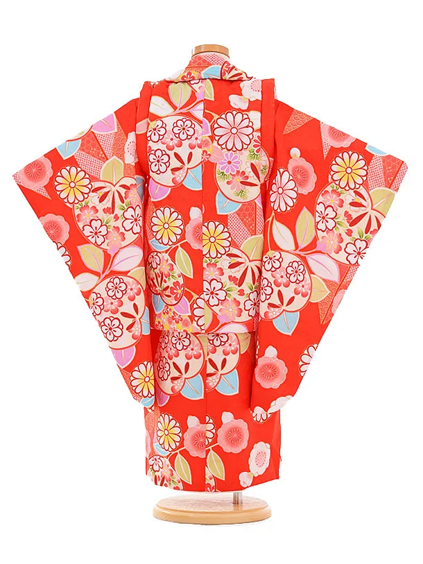 七五三レンタル(3歳女の子被布)3346 赤地 橘に菊