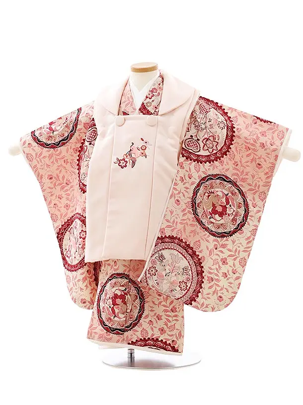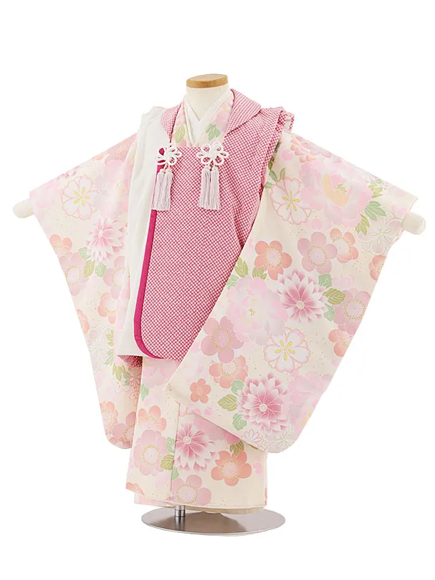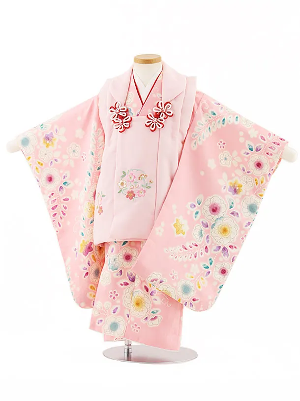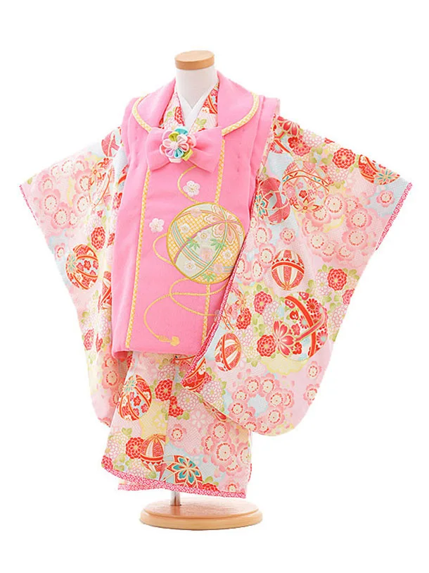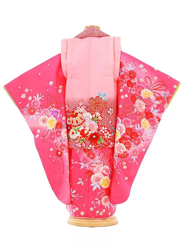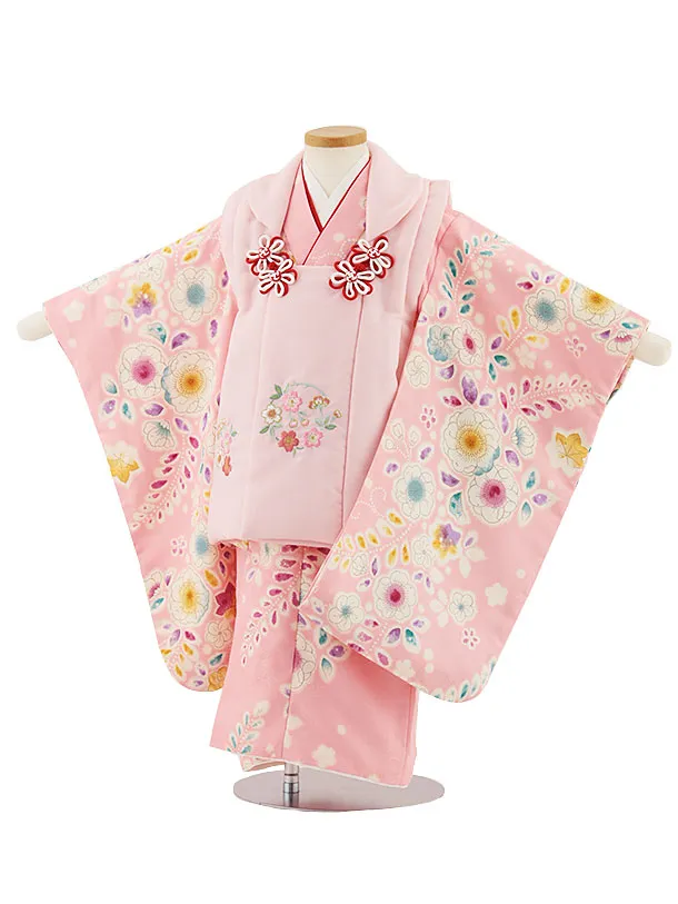七五三レンタル(3歳女被布)3352 ピンク×ピンク桜