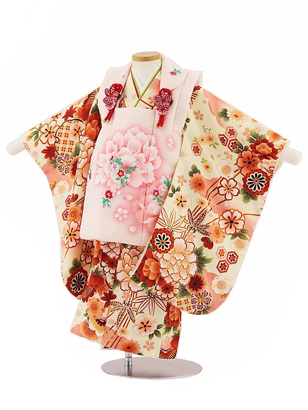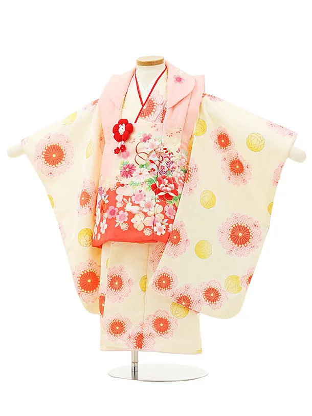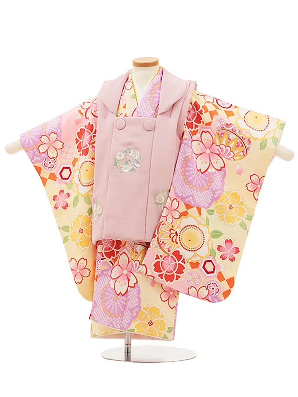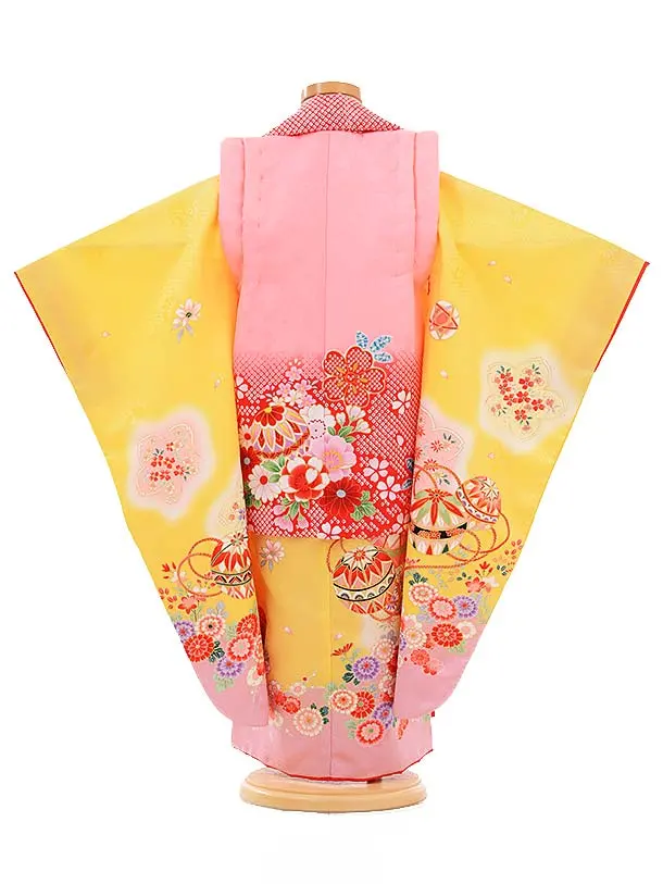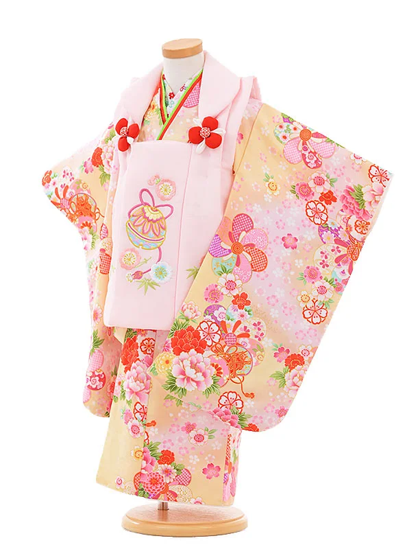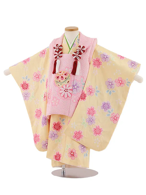 七五三レンタル(3歳女被布)3363 ピンク×黄色まり花