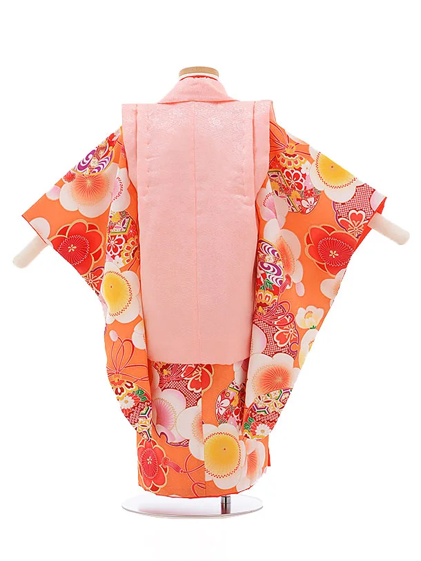 七五三レンタル(3歳女被布)3388 紅一点 ピンク×オレンジ 梅鈴