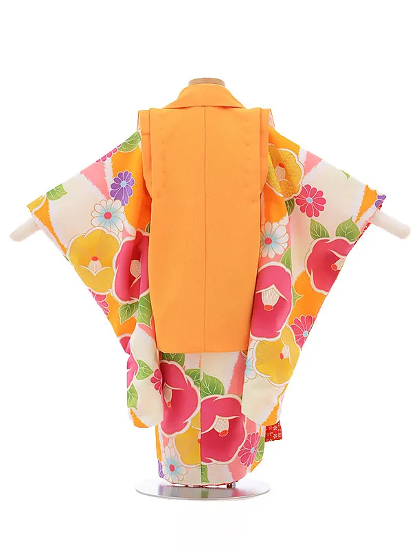 七五三レンタル(3歳女被布)3423 花わらべ オレンジ×クリーム地 椿