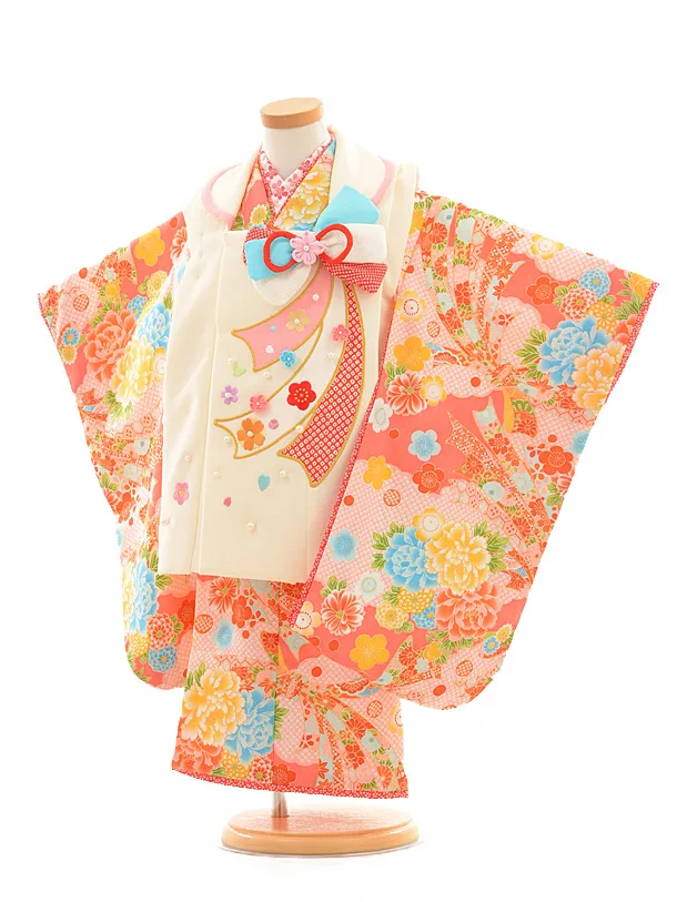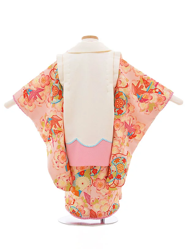 七五三レンタル(3歳女被布)3424乙葉 アイボリー×ピンク 桜折鶴