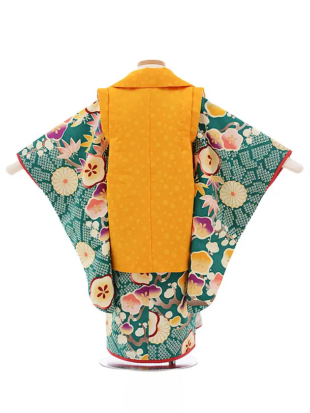 七五三レンタル(3歳女被布)3428UNSODO オレンジ色×グリーン 梅