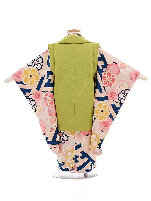 七五三(3歳女被布)3451 グリーン×紗綾型に梅