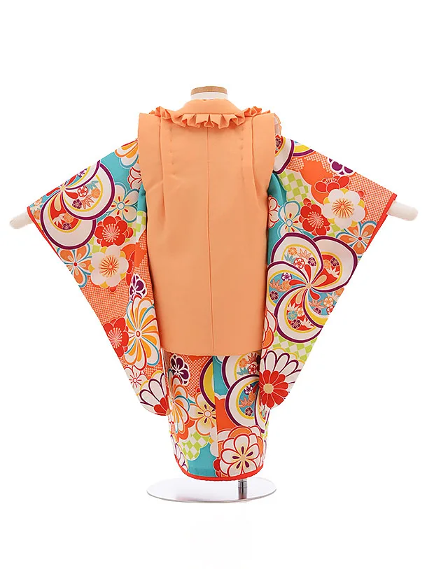 七五三(3歳女被布)3452 ぷちぷりオレンジ×ターコイズ 古典