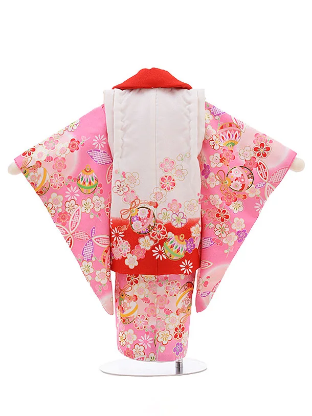 七五三レンタル(2歳女被布)3461 白ぼかし×ピンク 梅鈴