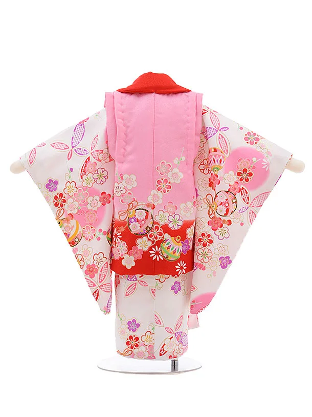 七五三レンタル(2歳女被布)3462 ピンクぼかし×白 梅鈴