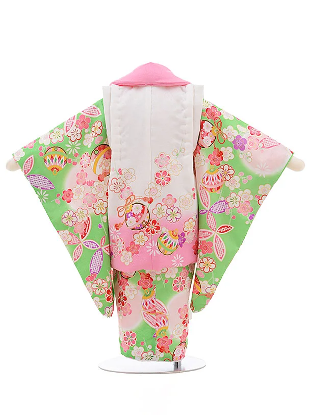 七五三レンタル(2歳女被布)3463 白ぼかし×グリーン 梅鈴