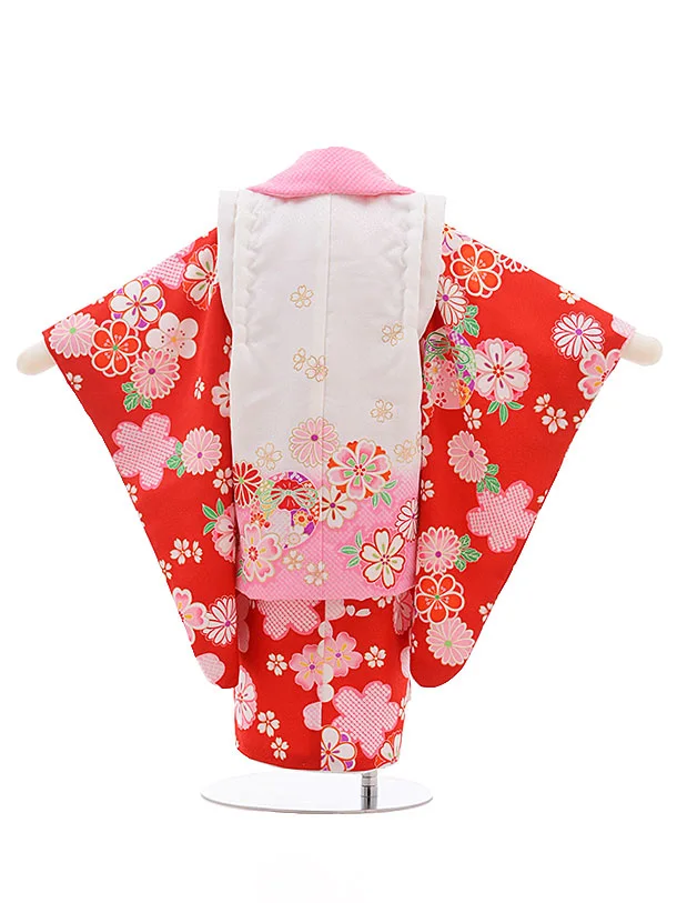 七五三レンタル(2歳女被布)3465 白ぼかし×赤 桜鈴