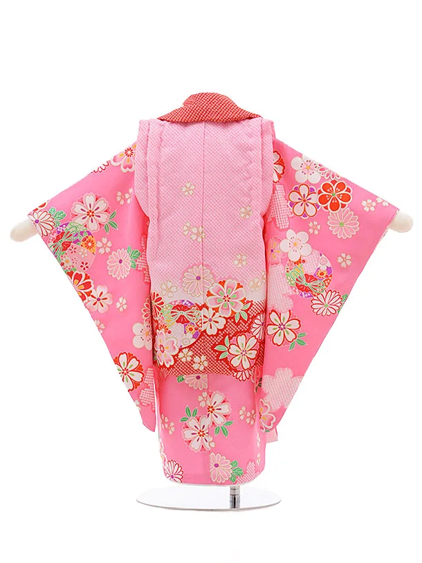 七五三レンタル(2歳女被布)3468 ピンクぼかし×ピンク 桜鈴