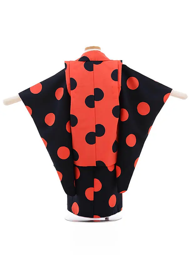 七五三レンタル(3歳女児被布)3477 オレンジ×紺 ドット
