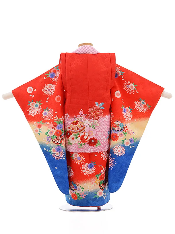 七五三レンタル(3歳女被布)3484 赤×赤 裾青 花