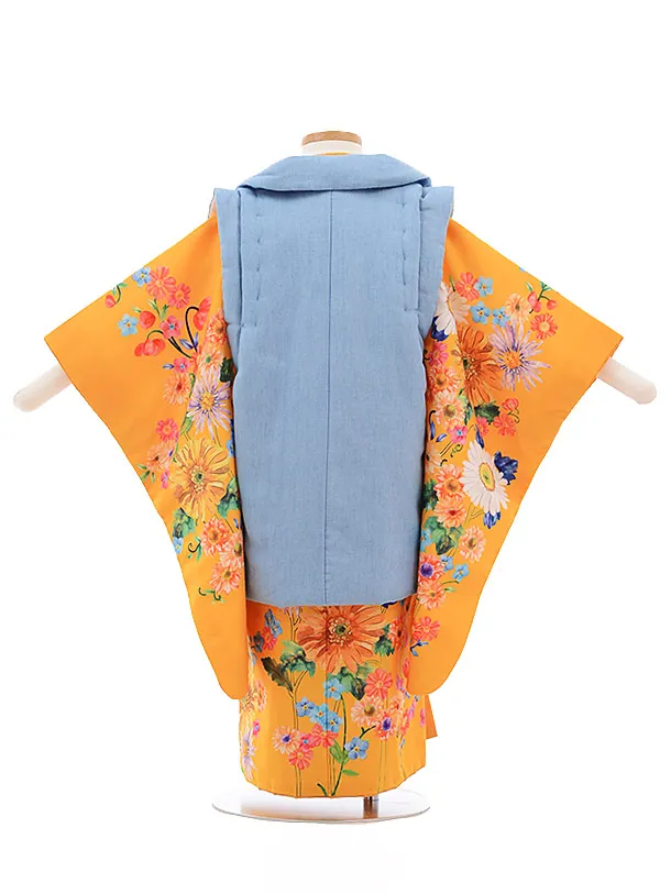 七五三(3歳女被布) 3504 チャイルドール ダンガリー オレンジ 花