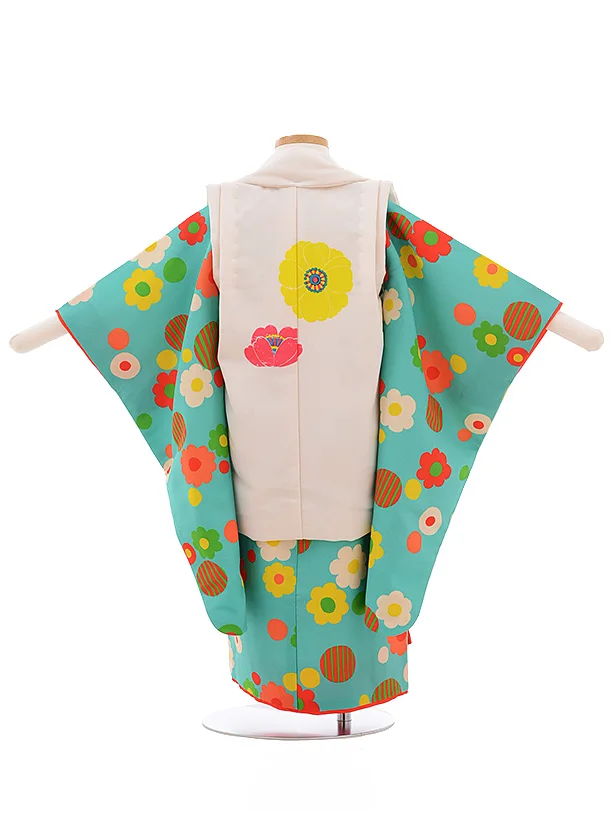 七五三レンタル(3歳女児被布)3549 LILLI 白×グリーン 花