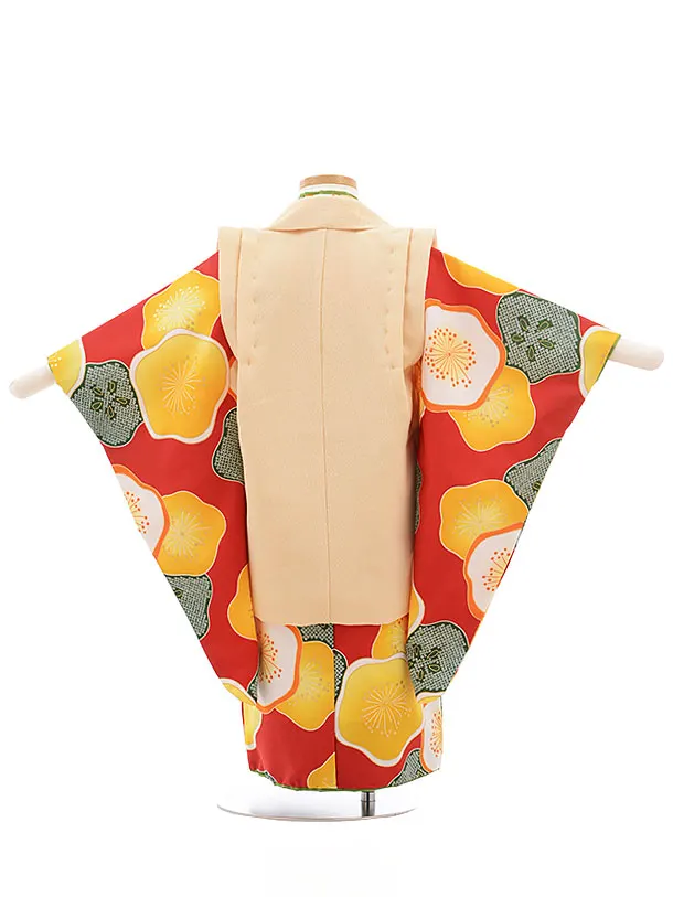 七五三(3歳女被布)3634 花わらべ ベージュ×赤地 梅