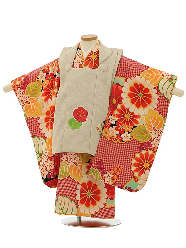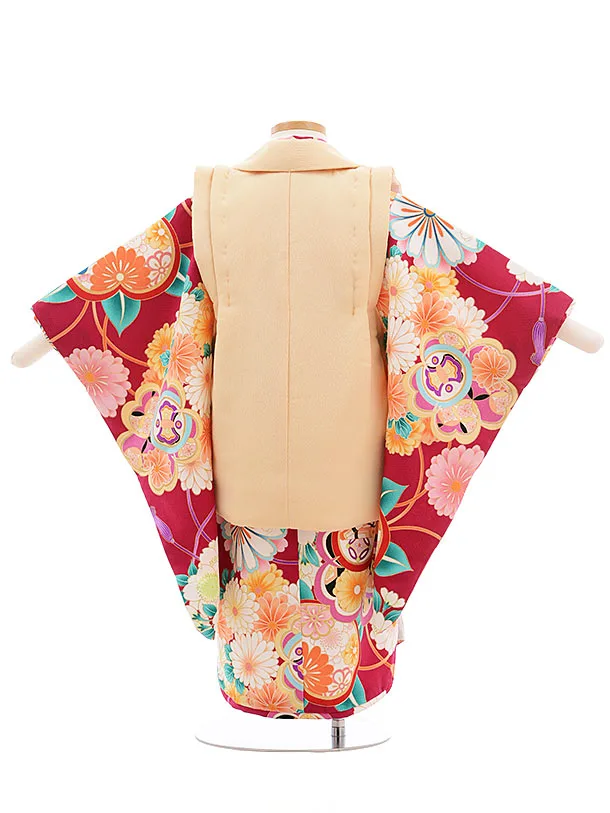 七五三(3歳女被布)3641 ベージュ×赤紫 薬玉