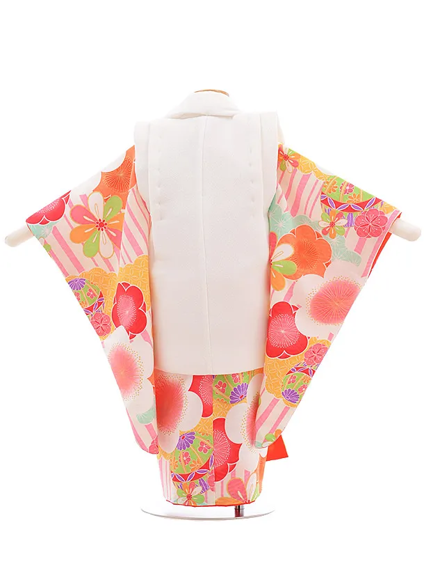 七五三(3歳女被布)3645 白×ピンクストライプ 梅