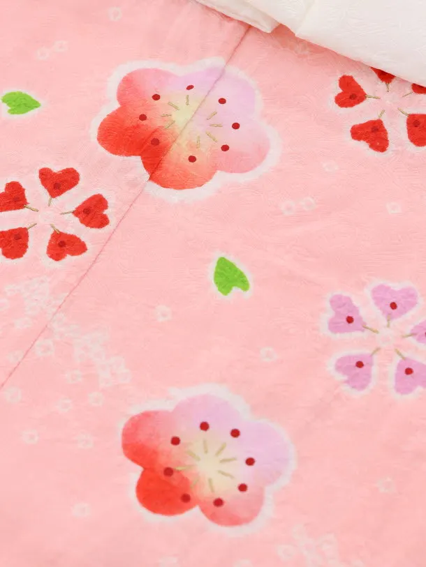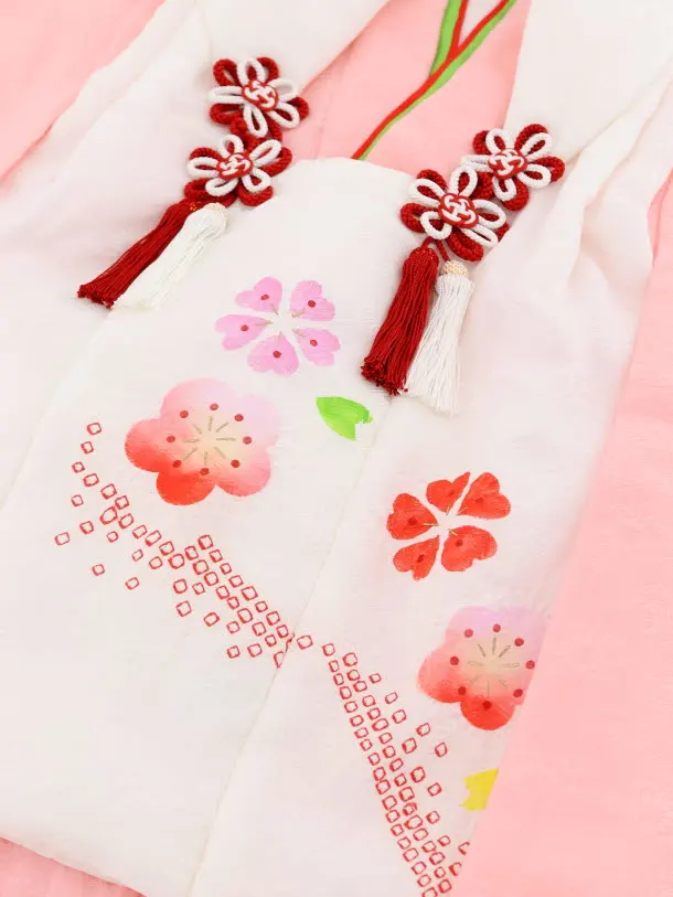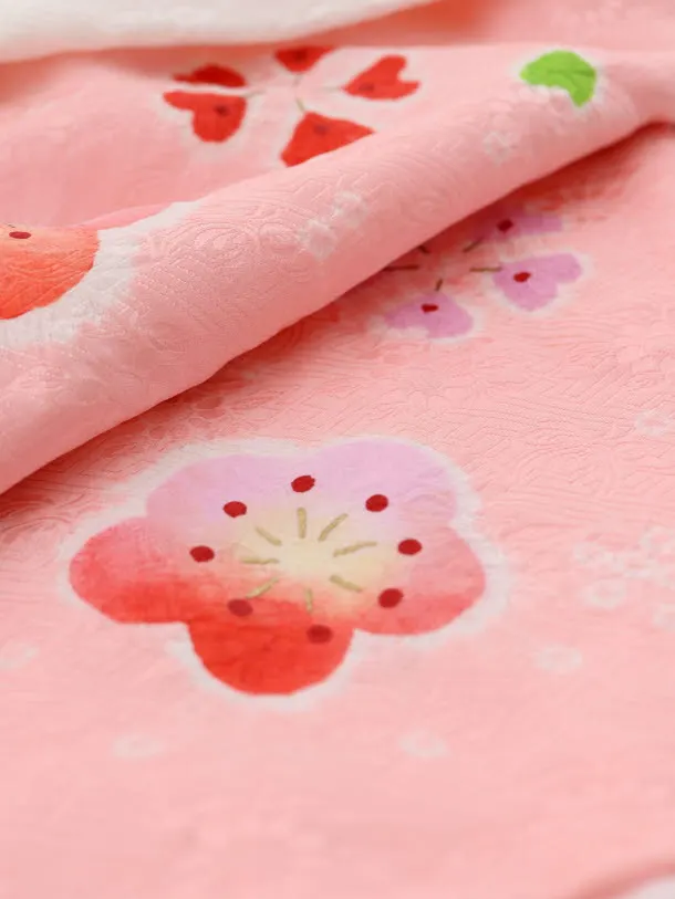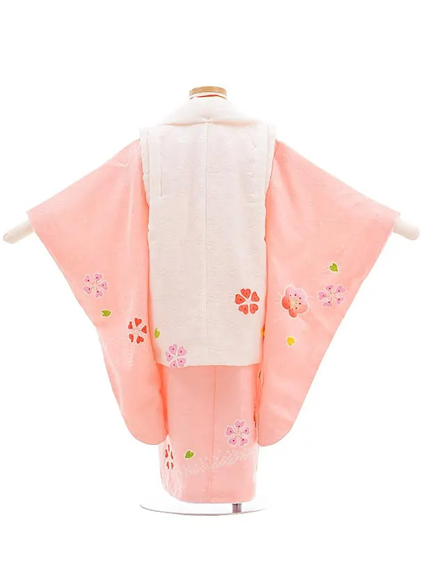 七五三(3歳女被布)3651 高級正絹 白×ピンク地 絞り 梅