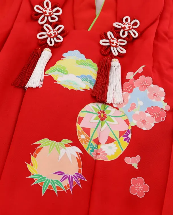 七五三(3歳女被布)3660 正絹 赤地 まり