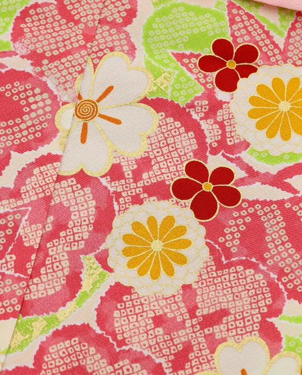 七五三(3歳女被布)3661 正絹 紅一点 ピンク×クリーム地 ピンク 梅