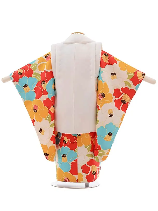 七五三(3歳女被布)3674 白×クリーム地 多色椿