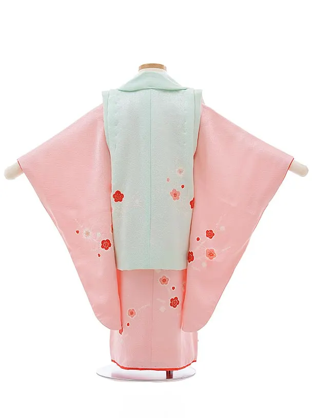 七五三レンタル(3歳女児被布)3680 正絹 パステルグリーン×ピンク梅