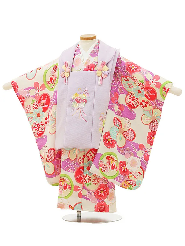 七五三レンタル(3歳女児被布)3688 パープル小花