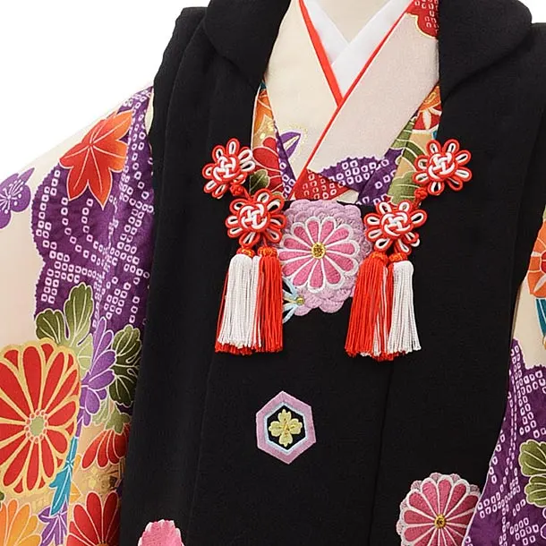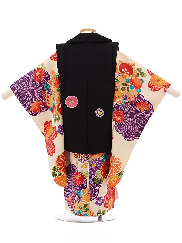 七五三レンタル(3歳女の子被布)3705黒xクリーム色菊花丸