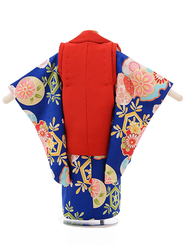 七五三レンタル(3歳女の子被布)3714赤xブルー雪輪