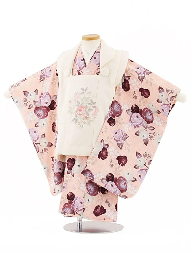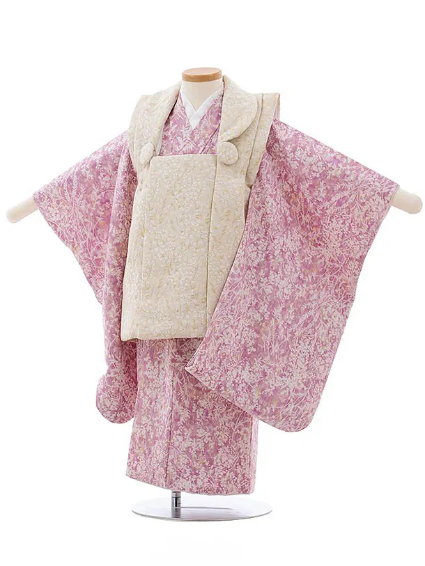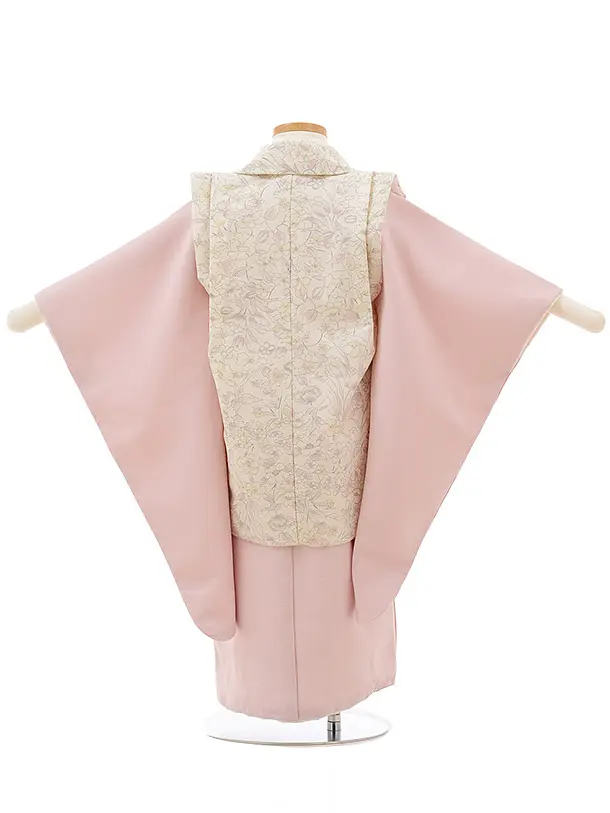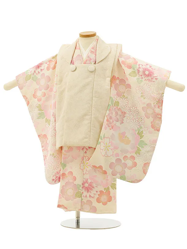 七五三レンタル(3歳女の子被布)3725ベージュ小花xピンク