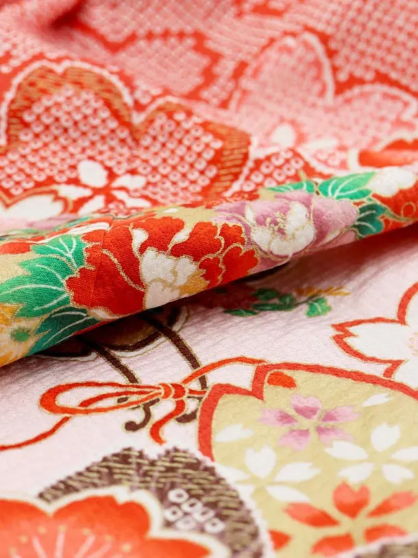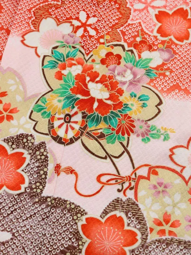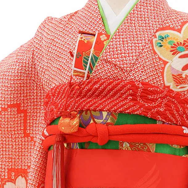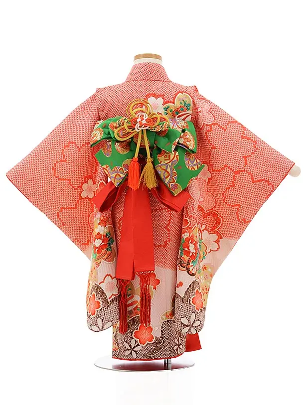 七五三レンタル(3歳女の子結び帯)3734 赤地 疋田柄 桜に花車