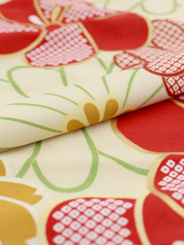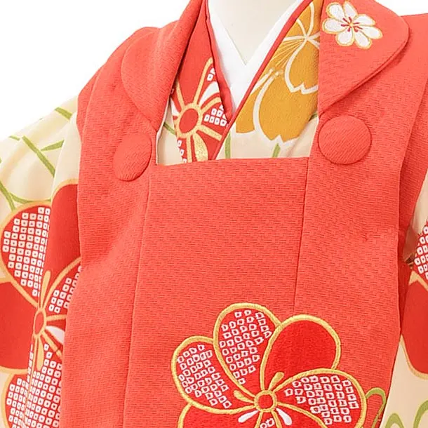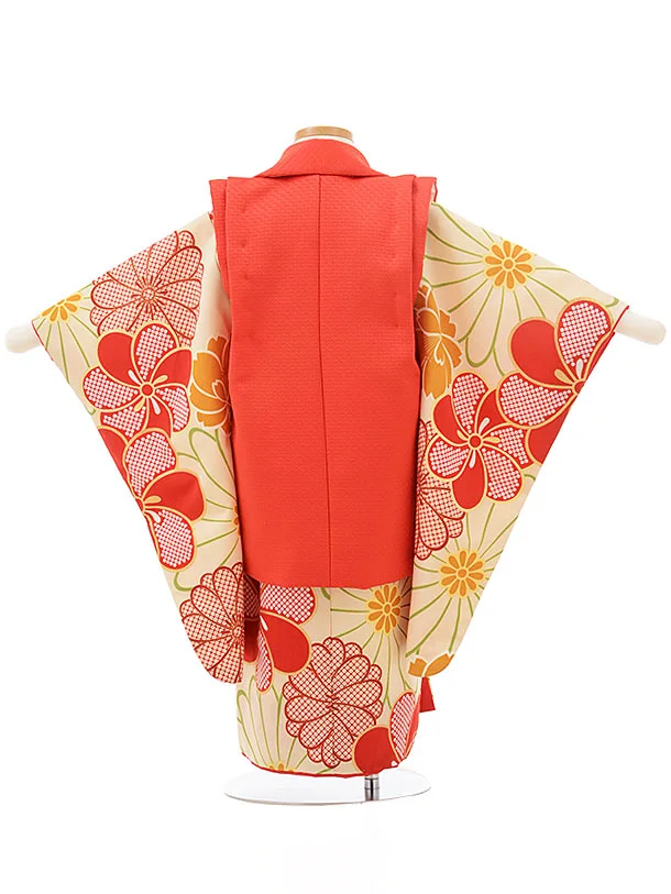 七五三(3歳女被布)3756 花わらべ 赤×ベージュ梅菊