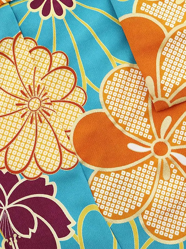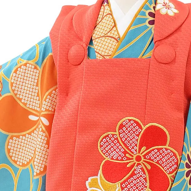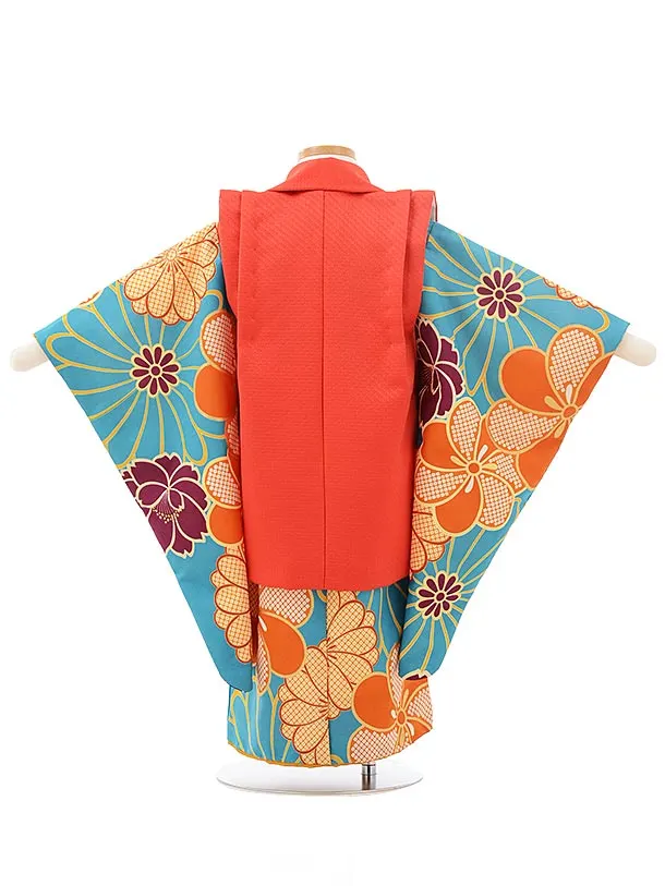 七五三レンタル(3歳女児被布)3767花わらべ赤×ターコイズ梅菊