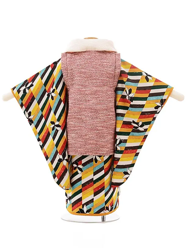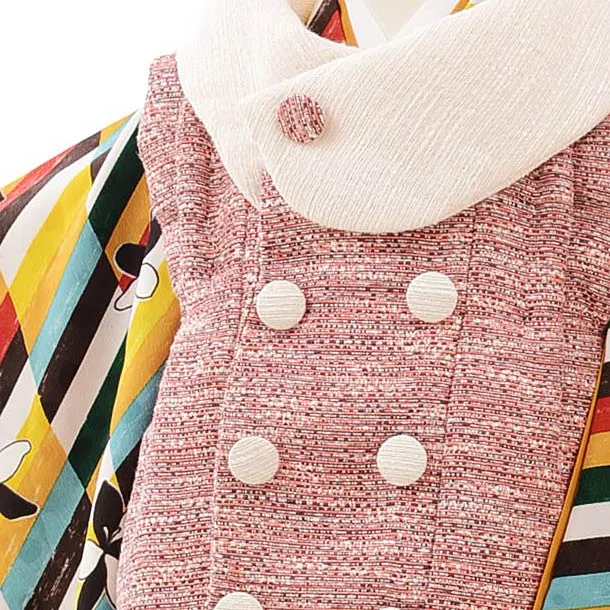 七五三レンタル(3歳女児被布)3780モダンアンテナツイード赤×カラフル
