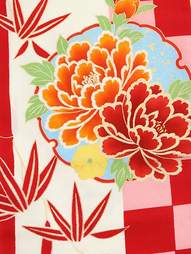 七五三レンタル(3歳女の子結び帯)3787赤ピンク市松牡丹