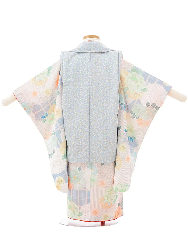 七五三レンタル(3歳女児被布)3795 KAGURAミント×桜に翁格子