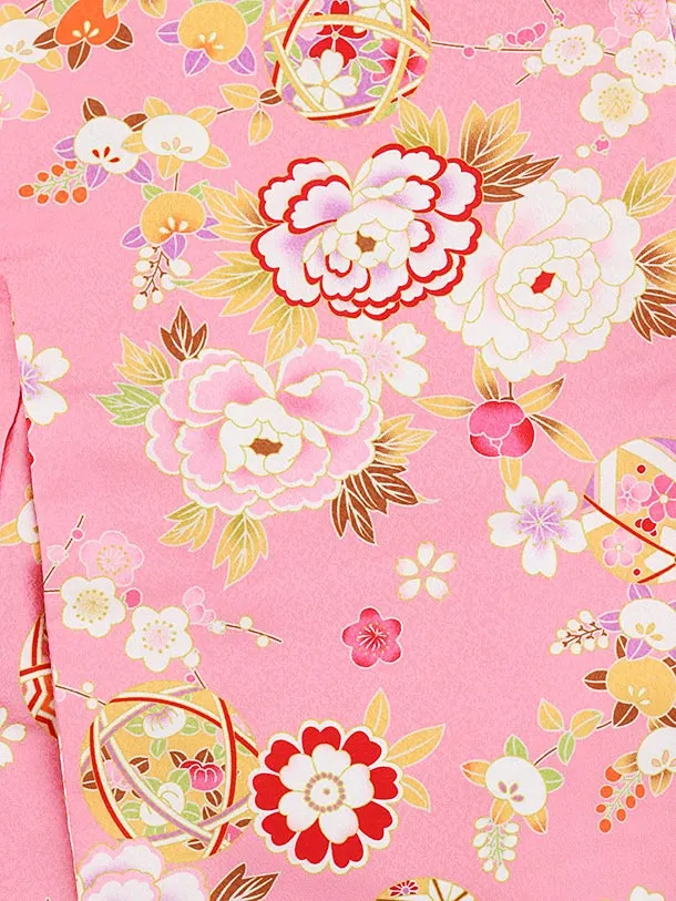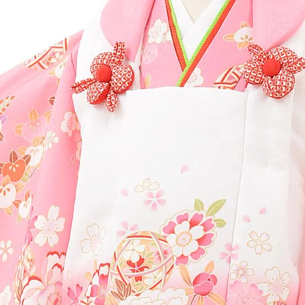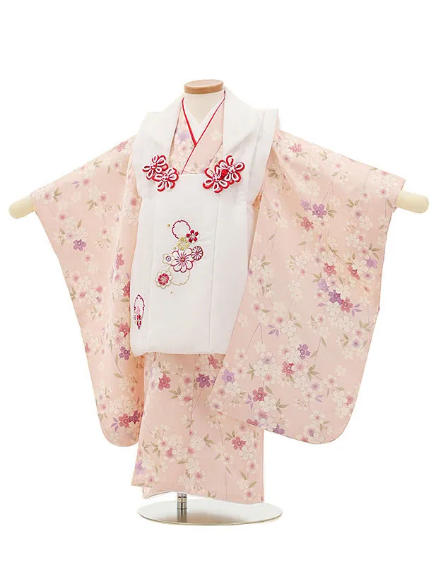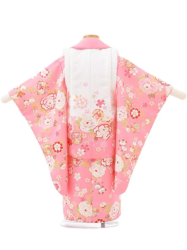七五三レンタル(3歳女児被布)3798白ピンクぼかし×ピンク花まり